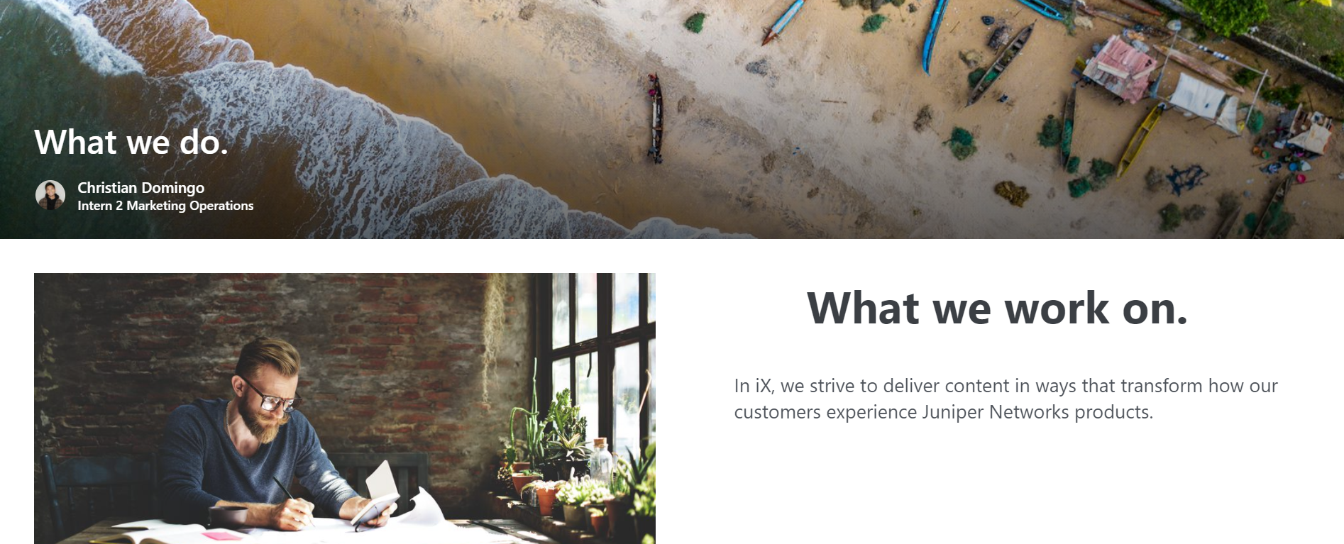 As an intern at the time, I was able to use my user experience skills to create a three-page SharePoint filled with images, links, and guides for our writing staff. The internal pages are still in use to this day and employees have found this to be an invaluable resource.